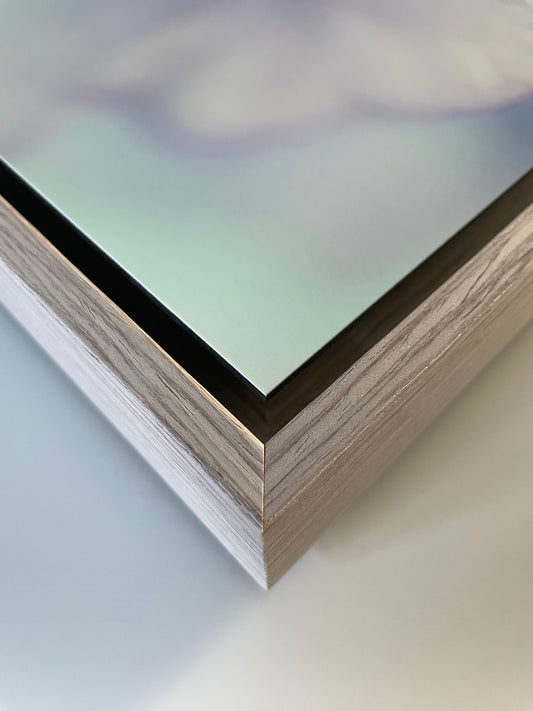 - Framed: Printed on archival paper, mounted on Dibond within a white aluminium or white oak floating frame. Includes a sturdy hanging system.
